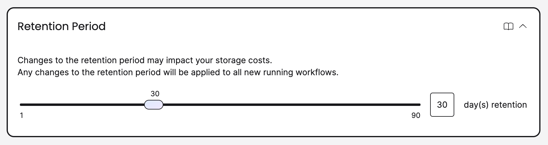 You can set the Retention Period between 1 and 90 days.